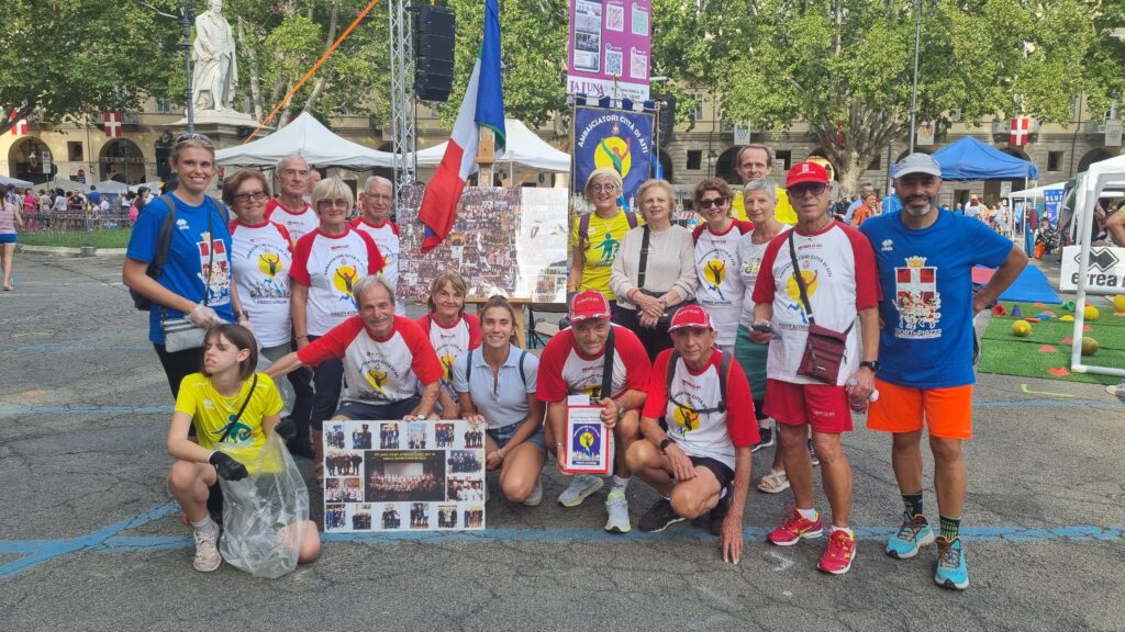 Asti ha ospitato domenica 21 settembre, “Sport in Piazza”, un evento che da anni celebra la vitalità sportiva del territorio come vetrina per tantissime associazioni cittadine. Grande successo anche per l’edizione 2025 con piazza Alfieri gremita tutto il pomeriggio di tantissimi bambini e ragazzi che hanno potuto provare le tante discipline sportive proposte dalle oltre 60 associazioni sportive dilettantistiche del territorio, presenti con i propri stand. E tra loro, c’eravamo anche noi, per il terzo anno consecutivo! Quest’anno abbiamo unito le forze con gli Ambasciatori per lo Sport della Città di Asti, avendo tra le nostre fila di volontari tanti Ambasciatori, a partire da Gianfranco Chiaranda e Angelo Marchione, condividendo lo spazio per fare conoscere le nostre attività.